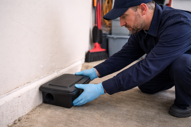 Interior rodent control stations are often used in combination with targeted trapping. These are placed in key areas where mice travel and nest. At the same time, an exterior inspection helps identify entry points that need to be sealed or addressed. This combined approach removes active mice while cutting off access for new ones, which is what stops the cycle quickly.